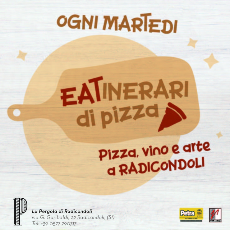 Per quattro martedì consecutivi, dal 23 luglio al 13 agosto, le vie di Radicondoli prenderanno vita con Eatinerari di Pizza – Pizza, Vino & Arte a Radicondoli, l’evento enogastronomico ideato e organizzato da La Pergola di Radicondoli che unisce la pizza di Tommaso Vatti alle eccellenze vinicole del territorio, in Via Garibaldi vestita a festa con le creazioni artistiche di Ammos Atelier.