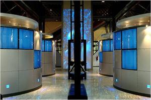 La seconda sezione, intitolata ‘La celebrazione della modernità’, è proprio quella che, tramite il binomio acqua – luce, rende omaggio al progresso sociale, scientifico, economico milanese durante tutto il Novecento.