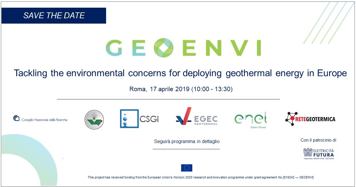 Per analizzare gli aspetti ambientali della geotermia profonda e fornire ogni informazione utile a comprenderne le caratteristiche di sostenibilità, l’Italia partecipa attivamente al progetto europeo GEOENVI, nato all’interno del programma Horizon 2020. L’obiettivo primario di GEOENVI è quello di assicurare che la geotermia profonda giochi un ruolo importante nel futuro del settore energetico europeo, dimostrando la sostenibilità delle sue tecnologie. GEOENVI intende infatti sviluppare una strategia di risposta alle problematiche ambientali basata sulle seguenti attività: