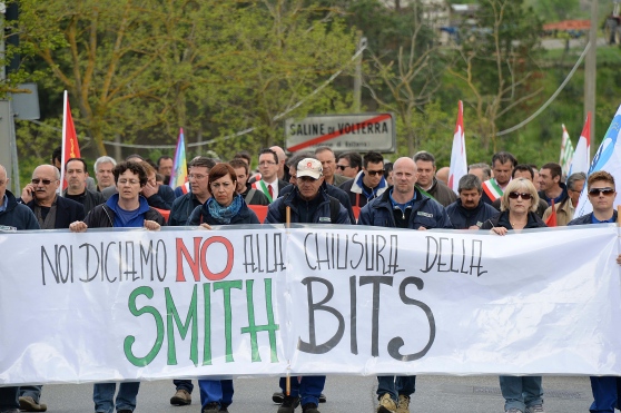 Il saluto dei bambini alla manifestazione del 30 aprile a Saline in sostegno dei 193 lavoratori della Smith che rischiano di perdere il posto, ha fatto scuola. In vista del passaggio in Valdicecina del Giro d’Italia, in programma giovedì prossimo, il sindaco di Volterra, Marco Buselli, lancia un appello agli abitanti di questo territorio: «Esponete fazzoletti bianchi alle finestre in solidarietà con gli operai dello stabilimento di Saline, come fecero i bambini al passaggio del corteo». Una giornata molto attesa, quella del passaggio della carovana della corsa ciclistica tra le più importanti al mondo, perché rappresenta un’occasione in più per accendere i riflettori sulla vertenza. Va letta anche in questo senso la telefonata fatta da Saline a Paolo Bettini, ex campione del mondo di ciclismo ed ex ct della Nazionale, affinché dia voce alla protesta. «Sono un ciclista e so bene quanto siano dure le salite – ha detto Bettini –. Ma so anche che dopo ci sono le discese e spero che questa metafora sia di conforto ai lavoratori della Smith che vivono una situazione di estrema difficoltà». Lo sportivo de La California ha un rapporto speciale con la Valdicecina, visto che ogni anno organizza la Granfondo che attrae centinaia di appassionati. Bettini sta partendo in queste ore per seguire il Giro d’Italia, ma giovedì non riuscirà a passare da queste parti. «Andrò dritto all’arrivo di Castiglione della Pescaia – racconta –. Ma sarò comunque vicino alla gente della Valdicecina che so essere molto coinvolta in questa vicenda. Non conosco da vicino i dettagli, ma è l’esempio lampante che la crisi in Italia non è finita, malgrado in giro si parli di creazione di posti di lavoro. Vivere una situazione del genere è un dramma e fa male al cuore». Bettini, in qualche maniera, riuscirà comunque a sostenere i lavoratori della Smith che per il giorno in cui è previsto il passaggio della corsa saranno riuniti in presidio. L’organizzazione della manifestazione sta proseguendo con la realizzazione degli striscioni e di cartelli in cui spiegare i motivi dell’agitazione Oggi, intanto, sarà un’altra giornata importante per Volterra e dintorni, visto che in mattinata ci sarà il sopralluogo della Regione Toscana nei locali messi a disposizione dall’amministrazione comunale per trasferire in città la sede dell’ufficio di presidenza all’interno di Palazzo dei Priori, “abitazione” del Comune. Nel pomeriggio i lavoratori si riuniranno in assemblea per ratificare il presidio permanente e l’occupazione della fabbrica. E in serata ci sarà il consiglio comunale aperto al teatro Persio Flacco (con gli operai che osserveranno un’ora di sciopero nel pomeriggio per permettere a quelli del turno serale di partecipare). L’unico punto all’ordine del giorno: “Il territorio unito dice no alla chiusura della Smith, un colpo mortale per l’intera valle del Cecina”. Sarà presente l’assessore alle attività produttive della Regione Toscana Gianfranco Simoncini che tornerà a Volterra martedì 12 maggio (e non il 13 come annunciato ieri) per inaugurare l’ufficio di presidenza della Regione.