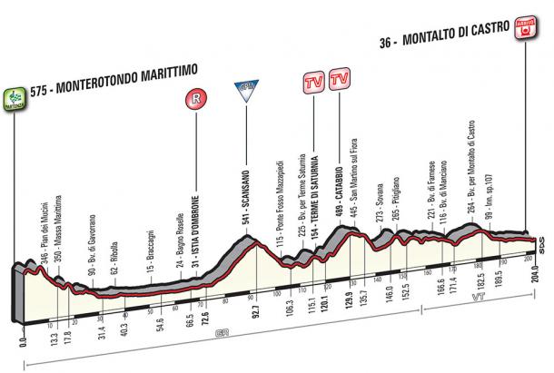 Un affascinante percorso lungo oltre 200 chilometri, con salite e strade mosse, in cui saranno favoriti i velocisti. Lo spettacolo sarà assicurato. Impegnativo sarà lo strappo di circa 300 metri nell’ultimo chilometro con pendenze fino al 7%. A Montalto di Castro i giovani Gaviria e Ewan sfideranno Cavendish. In tv su Rai Sport dalle 12.30, Eurosport 2 dalle 14, Rai Tre dalle 15.20.