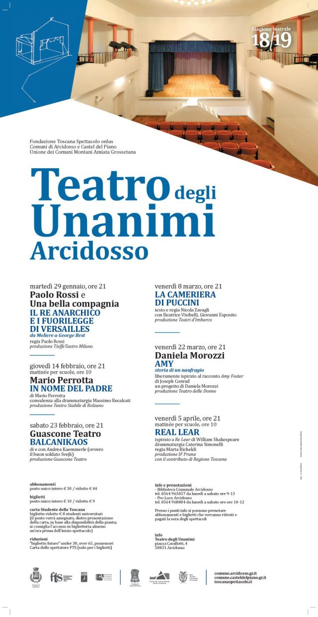 Al Teatro degli Unanimi di Arcidosso, il programma della stagione Teatrale Professionisti organizzata dai comuni di Arcidosso e Castel del Piano, con l’Unione dei comuni Amiata grossetana, in collaborazione con Fondazione Toscana Spettacolo…(continua)
