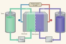 Le batterie di flusso funzionano pompando diverse sostanze chimiche su due elettrodi separati da una membrana. I protoni passano attraverso la membrana mentre gli elettroni viaggiano lungo il circuito che collega gli elettrodi, andando a scaricare la batteria. Invertendo la reazione, si puo’ caricare la batteria. Nelle batterie di flusso, gli elementi elettro-attivi sono alloggiati in serbatoi esterni di liquidi che, combinati insieme, producono elettricita’.