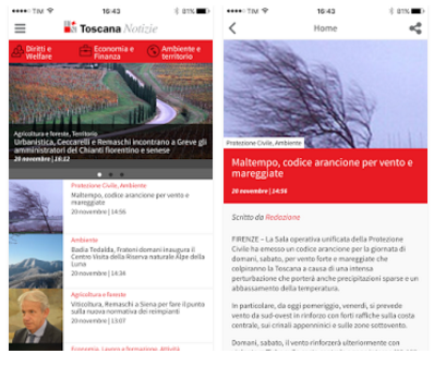 Dopo il sito, gli ebook, i canali sociali, i comunicati via WhatsApp, arriva anche l’App per iOS e Android. Per consultare tutte le notizie dell’Agenzia di informazione della Giunta regionale toscana ed essere sempre aggiornati su quanto accade nella nostra regione, anche in movimento, da oggi è sufficiente scaricare e lanciare la App.
