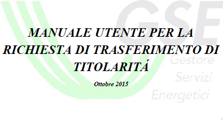 Il GSE informa che è disponibile la versione aggiornata del “Manuale Utente per la Richiesta di Trasferimento di Titolarità” (link in basso) in cui sono indicate le modalità di gestione della variazione di titolarità. I principali cambiamenti riguardano i titoli autorizzativi, le procedure per gli impianti alimentati da energie rinnovabili non fotovoltaiche e i costi di istruttoria. In particolare è prevista: