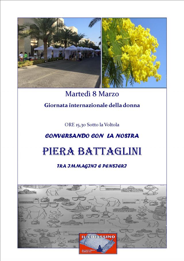 Sotto la Voltola ore 15,30 Festa della Donna, un pomeriggio con Piera Battaglini ; ore 17 Presentazione Bilancio preventivo dell’Associazione per il 2016