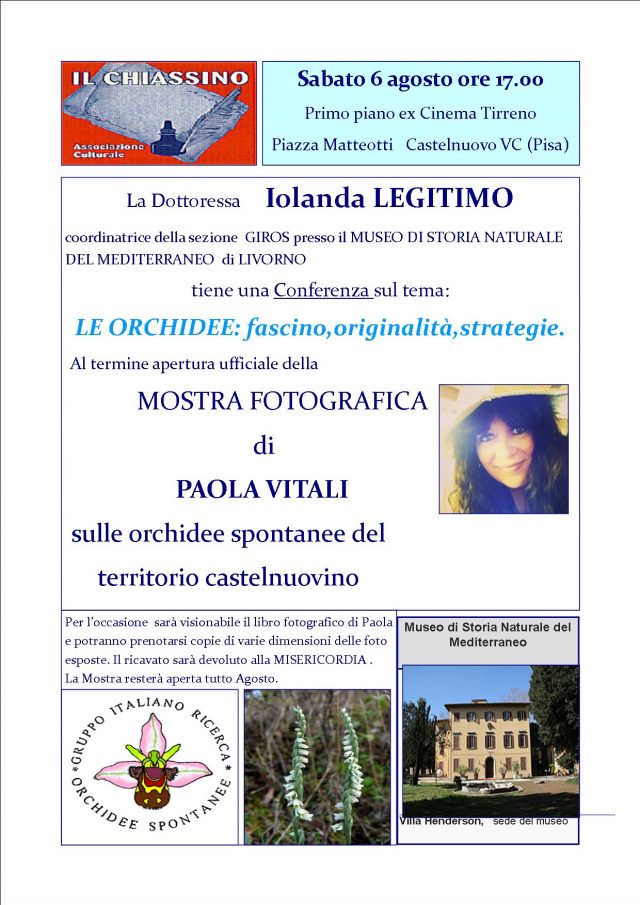 Turismo a Castelnuovo Val di Cecina: “Le orchidee spontanee”, conferenza della dott.ssa Iolanda Legitimo e mostra fotografica di Paola Vitali