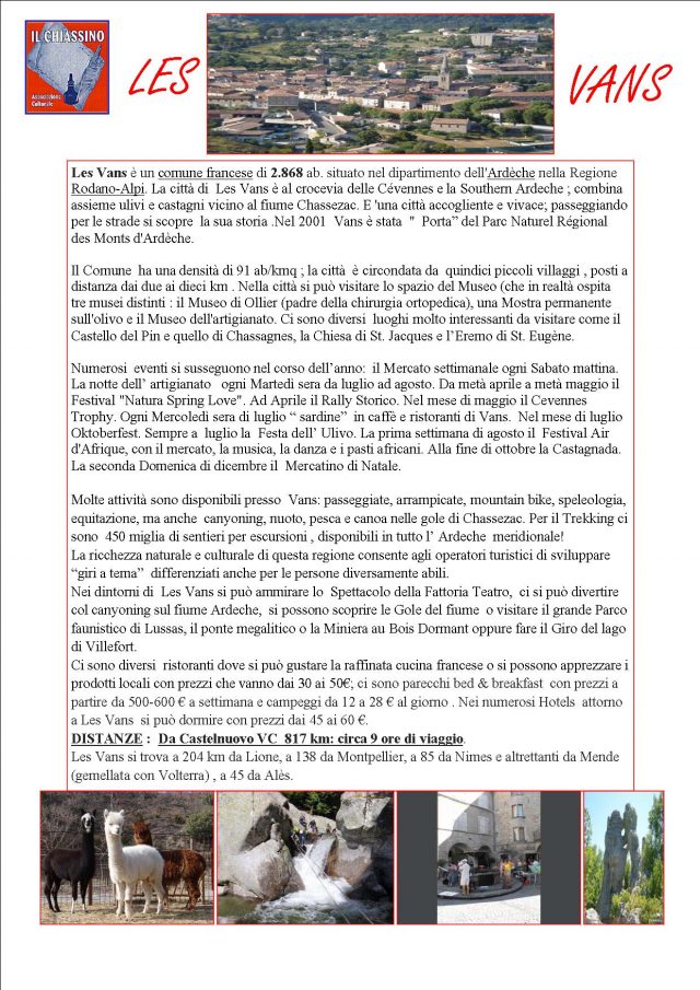 L’Associazione è lieta di invitarvi alla presentazione della città di Les Vans , curata dal ing. Maurizio BACCI, per SABATO 10 OTTOBRE ore 17.00 ex cinema Tirreno e alcune note essenziali riprese dal sito web della cittadina francese.