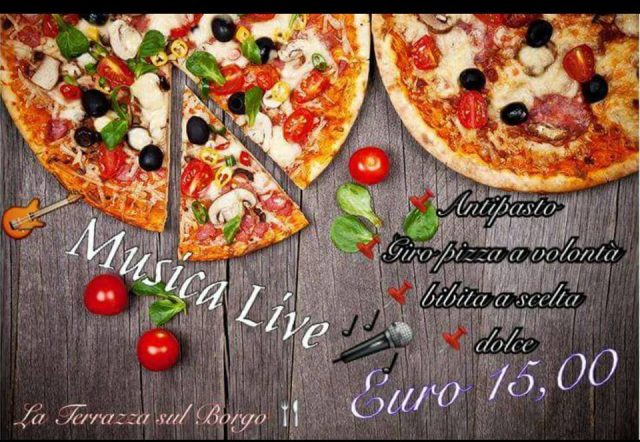 Giovedì 2 Giugno, presso il ristorante pizzeria "La terrazza sul borgo" di Montecatini Val di Cecina a cena si terrà il Giro Pizza con musica dal vivo.