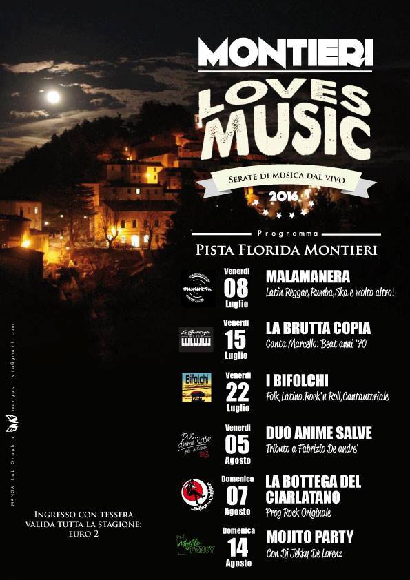 ore 22:00 Musica dal vivo (tributo a Fabrizio De Andrè) con il DUO ANIME SALVE Pista Florida Montieri