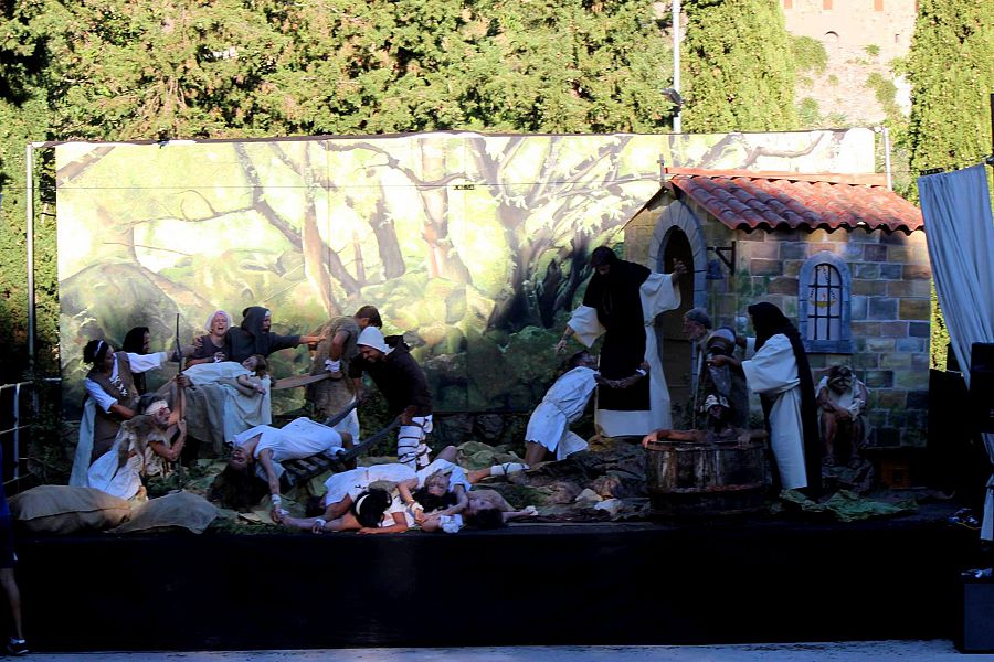 All’interno della festa paesana, giunta alla 43esima edizione, si è disputato per la sesta volta il gioco dei quadri viventi. Tante persone, truccate e vestite in tema hanno dato vita ai quadri: "Ogni rione – ha spiegato uno degli organizzatori, Marcello Cerri – sceglie un tema, allestisce il quadro con scenografia e persone in costume di scena. Il tutto è accompagnato da una voce narrante e musica sia prima che durante l’apertura del sipario. L’apertura è di due minuti e contano, oltre a scena e personaggi anche l’ immobilità delle persone e la presentazione".