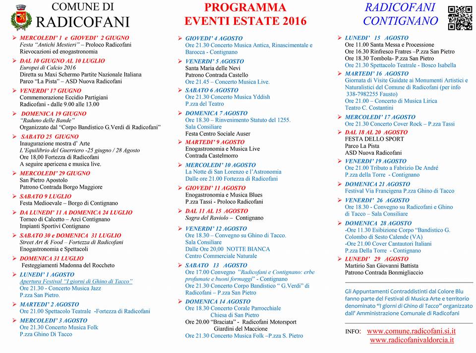 E’ online il programma delle attività estive del Comune di Radicofani per l’Estate 2016, e più in particolare per i mesi di Giugno, Luglio ed Agosto.