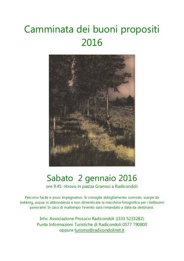 Ore 9.45: “Camminata dei buoni propositi”, organizzata da Associazione ProLoco Radicondoli. Ritrovo in piazza Gramsci. In caso di maltempo l’evento verrà rimandato a data da destinarsi