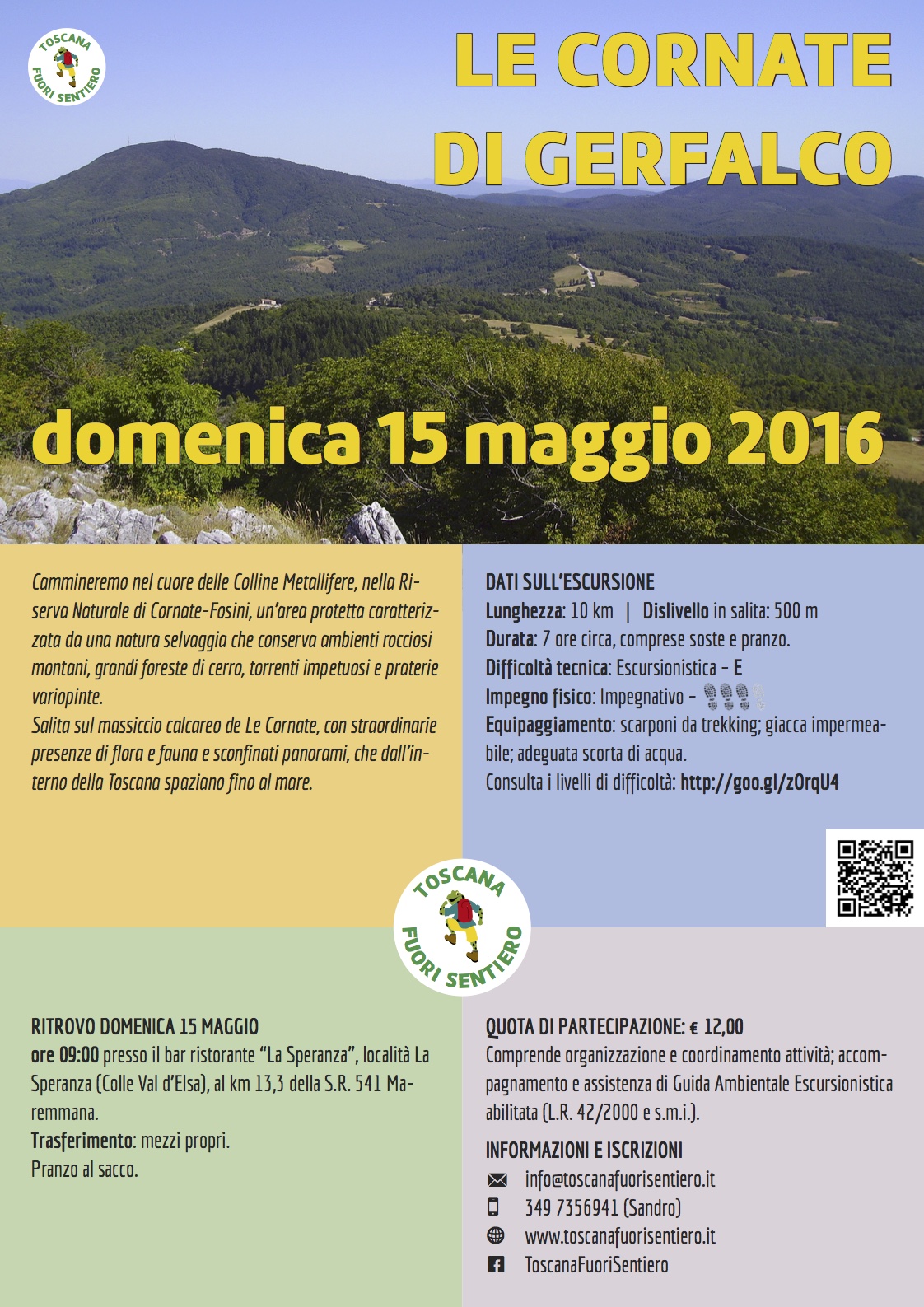 dalle ore 7 alle ore 13: Cammineremo nel cuore delle Colline Metallifere, nella Riserva Naturale di Cornate-Fosini, un’area protetta caratterizzata da una natura selvaggia che conserva ambienti rocciosi montani, grandi foreste di cerro, torrenti impetuosi e praterie variopinte. Salita sul massiccio calcareo de Le Cornate, con straordinarie presenze di flora e fauna e sconfinati panorami, che dall’interno della Toscana spaziano fino al mare.