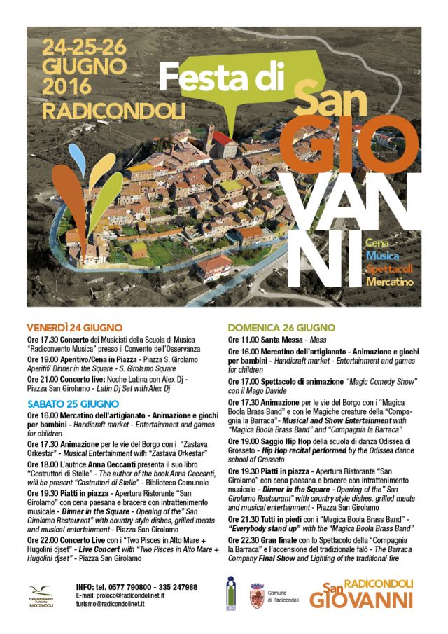che si terrà a Radicondoli nei giorni 24, 25, 26 Giugno 2016