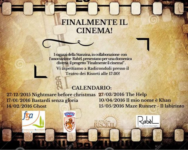 Domenica 27 dicembre 2015 alle ore 17.30 presso il Teatro dei Risorti di Radicondoli siamo molto lieti di invitarvi alla prima proiezione del progetto "Finalmente il Cinema!"
