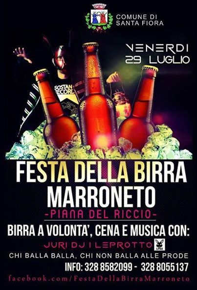 Venerdì 29 luglio Piana del Riccio, Marroneto birra a volontà, cena e musica con Juri Dj I Leprotto.