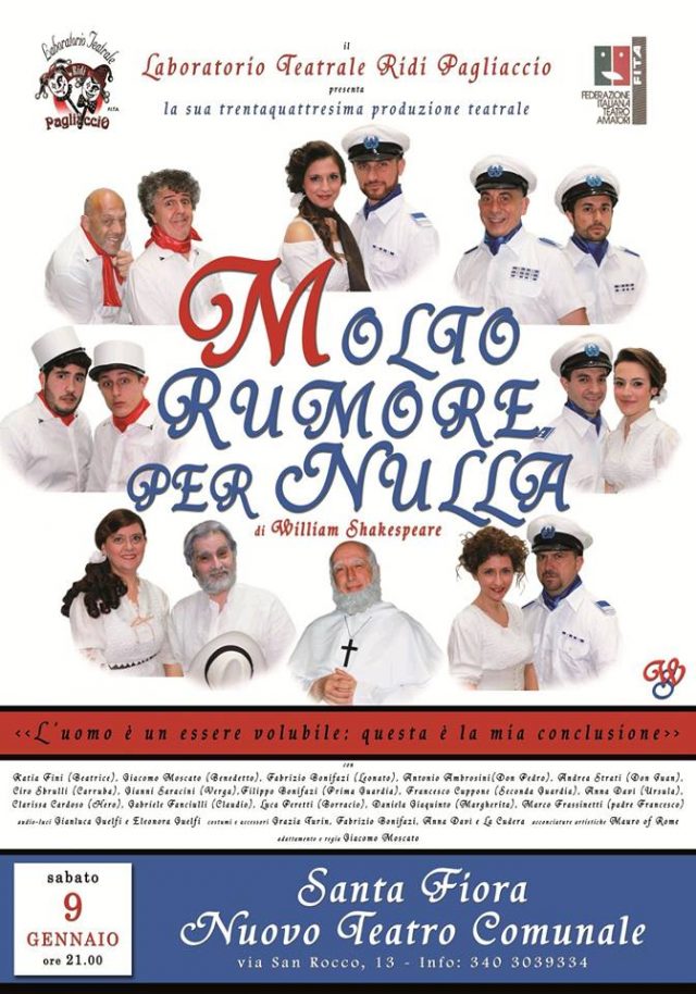 Commedia breve e brillante scritta tra l’estate del 1598 e la primavera del 1599. La vicenda si svolge a Messina dove la vita pacifica di un gentiluomo di nome Leonato viene animata dall’arrivo di Don Pedro d’Aragona e di alcuni cavalieri del suo seguito.