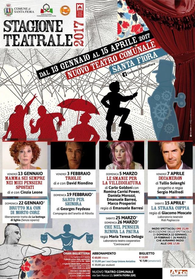 Gli abbonamenti sono in vendita alla biglietteria del Teatro – Via San Rocco 13 Santa Fiora: