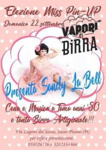 Domenica 22 presso il birrificio “Vapori di Birra” a Sasso Pisano si terrà l’Elezione di Miss Pin-Up con cena e musica a tema Anni ’50