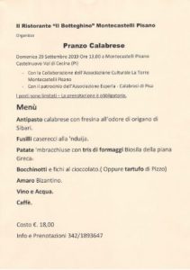 Domenica 29 presso il ristorante Il Botteghino si svolgerà il Pranzo calabrese alle ore 13:00