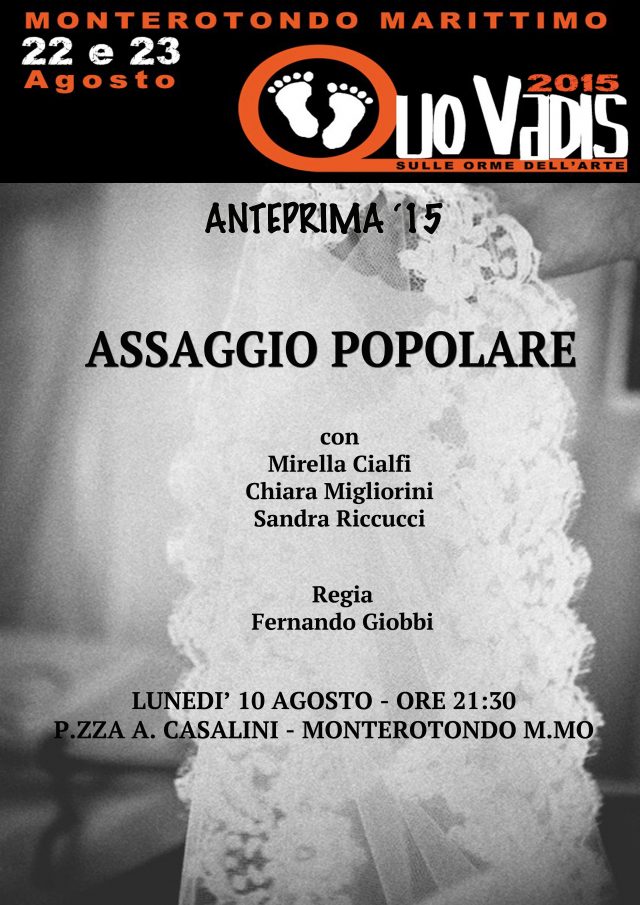 Alle 21.30, invece, in Piazza A. Casalini, si terrà l’anteprima della rassegna "Quo Vadis, sulle orme dell’Arte", con "Assaggio Popolare", con Mirella Cialfi, Chiara Migliorini e Sandra Riccucci, per la regia di Fernando Giobbi