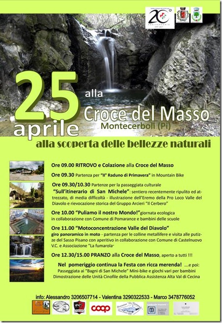 Dopo alcuni anni di assenza, quest’anno torna la tradizionale Festa del 25 Aprile alla “Croce del masso di Montecerboli”. Questa iniziativa è rinata grazie alla volontà di alcuni soci della Pubblica Assistenza Alta Val di Cecina (che in quest’anno festeggia i 20 anni dalla fondazione) e altre associazioni e aziende locali che si sono rese disponibili.