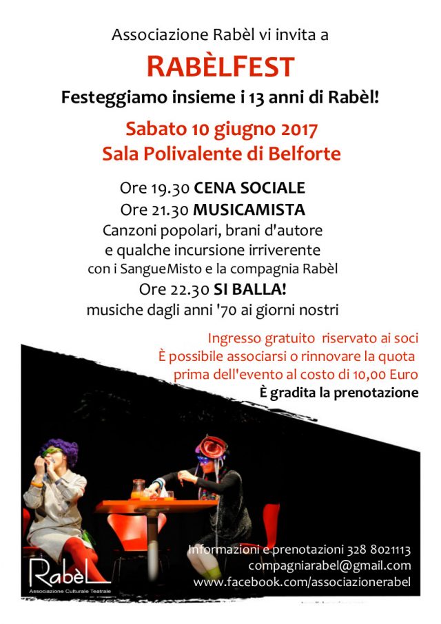 Ingresso gratuito riservato ai soci Rabel, è possibile associarsi o rinnovare la quota prima dell’evento al costo di € 10,00.