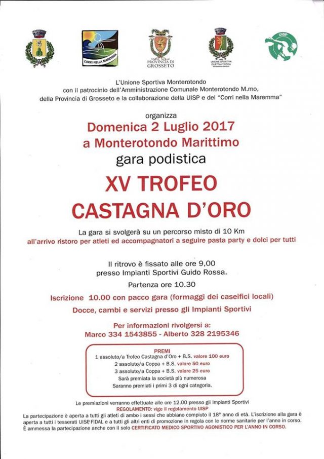 Il XV Trofeo di podismo Castagna d’Oro caratterizzerà una grande domenica di sport a Monterotondo Marittimo.