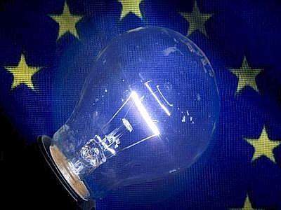 SCH02 SCHWERIN (ALEMANIA) 18.06.08 Una bombilla de tungsteno sobre una bandera de la Unión Europea en Schwerin (Alemania), el 18 de junio de 2008. La Comisión Europea pretende prohibir las bombillas convencionales a partir de febrero de 2009, según informaciones aparecidas en el 'Rheinische Post'. La Comisión busca la eficiencia energética con las bombillas de bajo consumo para reducir las emisiones de CO2. La nueva norma será efectiva en 2008, pero la prohibición legal se implantará de forma paulatina. Las bombillas de tungsteno deberán desaparecer de Europa a mediados de la próxima década. EFE/Jen Buettner