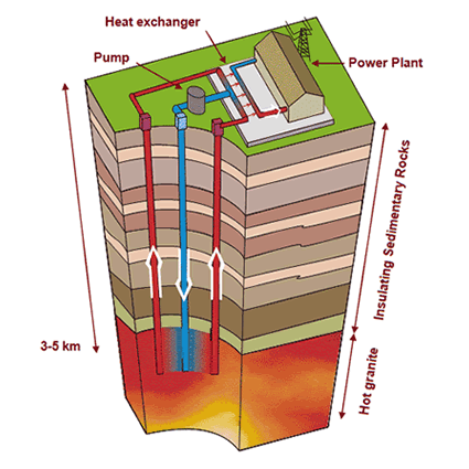 La centrale geotermica, progettata dalla società londinese Geothermal Engineering, sorgerà nella località di Redruth. L’impianto produrrà in parte energia elettrica (10 MW), che sarà immessa nella rete nazionale, e in parte calore (55 MW) che servirà al teleriscaldamento degli edifici della regione. Il nuovo impianto rappresenta un importante passo avanto nella cosiddetta tecnologia EGS (Engineered Geothermal System) che consente di ottenere calore attraverso la perforazione di rocce del sottosuolo. L’impianto utilizzerà un liquido che pompato si riscalda al contatto con le rocce. Gli esperti della Geothermal Engineering hanno stimato che la temperatura nel sito di Redruth delle rocce possa raggiungere circa 200 °C.