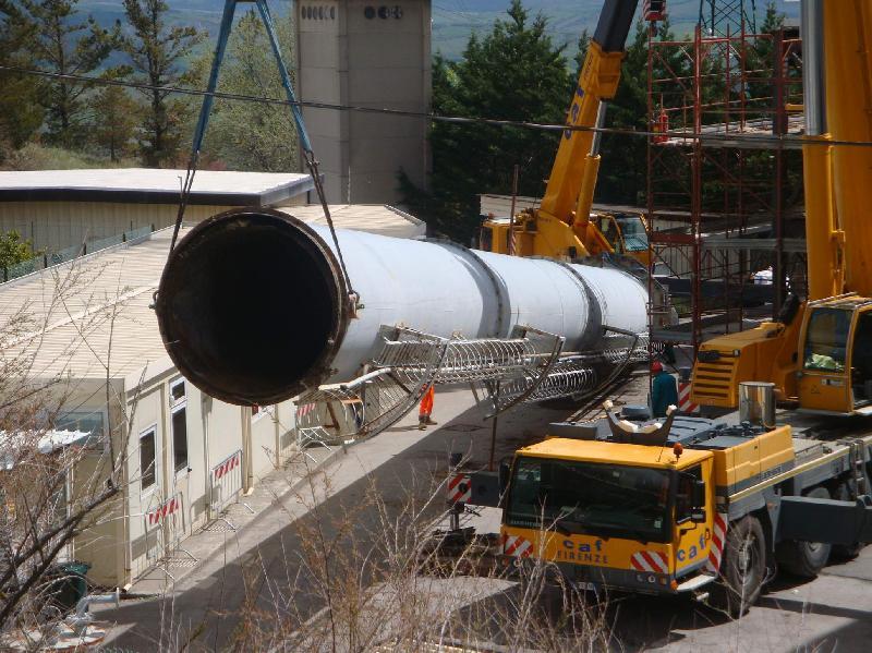 Alto 50 metri e con un diametro di oltre 2, il camino fatto a tronco di cono dal peso di circa 35 tonnellate non segna più quindi, da sabato, lo skyline di Piancastagnaio.