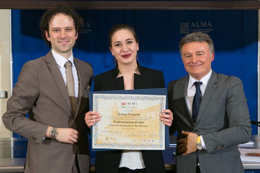 È la 19enne Teresa Creatini di Pomarance il miglior studente in assoluto della VI edizione del Corso Superiore di Sala, Bar e Sommellerie promosso da ALMA – La Scuola Internazionale di Cucina Italiana, corso che ha preso il via alla presenza dell’illustre maître Vincenzo Donatiello nel settembre dello scorso anno.