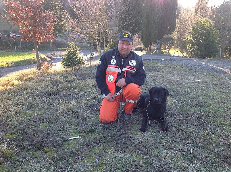 “Teo nella vita di tutti i giorni è un normale cane ‘da salotto’, gioca con mia figlia, sta in casa con noi e fa le cose che fanno tutti gli altri animali domestici, ma grazie all’addestramento ora è uno dei pochi cani in Italia accreditati per la ricerca delle persone disperse, sicuramente l’unico nel nostro territorio”. Con soddisfazione Sandro Cheli di Montecerboli, frazione del Comune di Pomarance, racconta il traguardo che ha raggiunto insieme al suo labrador nero, al termine di un percorso di addestramento che dura ormai da due anni e mezzo e che continuerà ancora. Teo e Sandro, infatti, sono la prima unità cinofila della Val di Cecina accredita dall’Ente Nazionale della Cinofilia Italiana  per la ricerca di dispersi in superficie.
